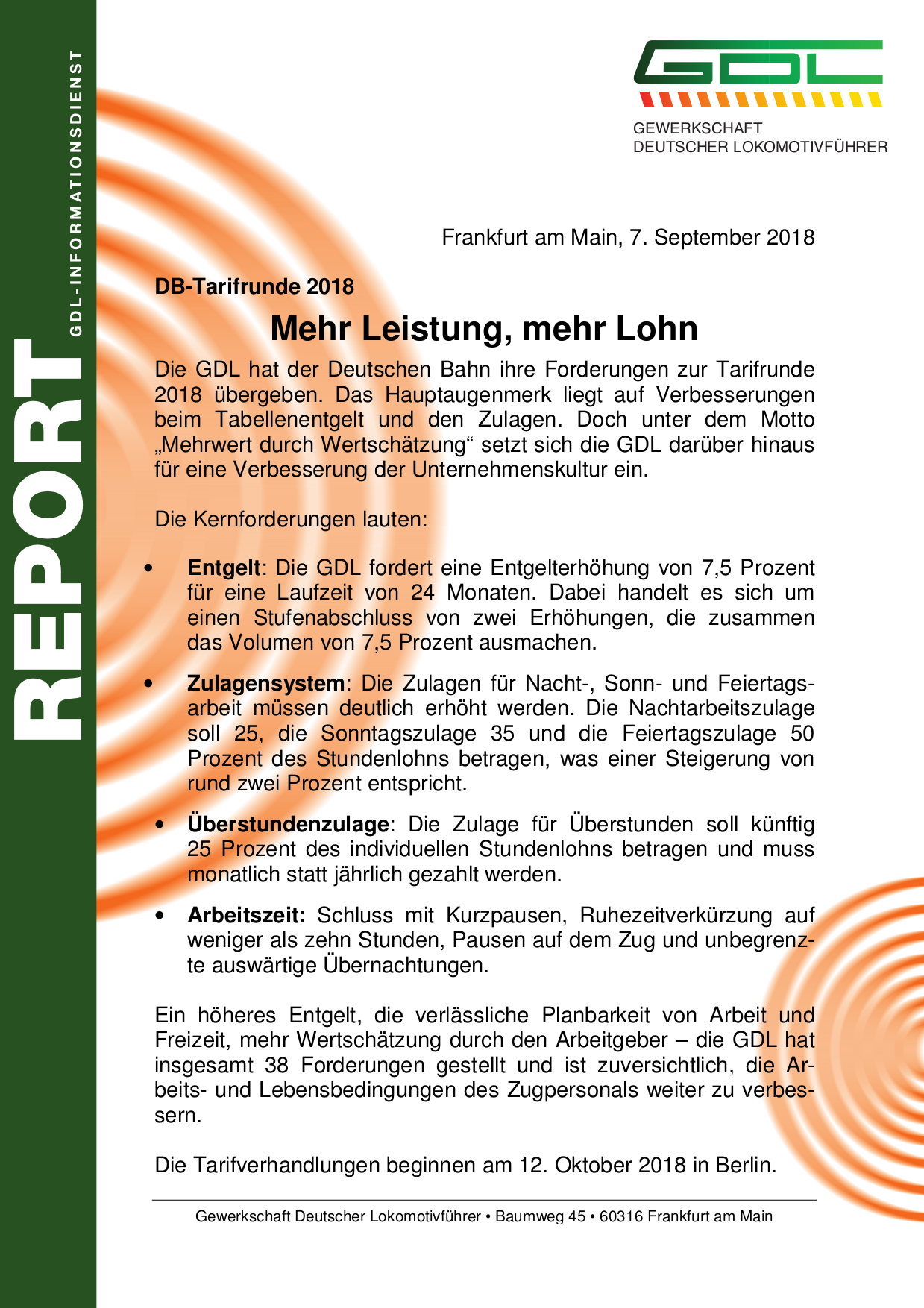 Änderung des GDL Tarifwerks DB