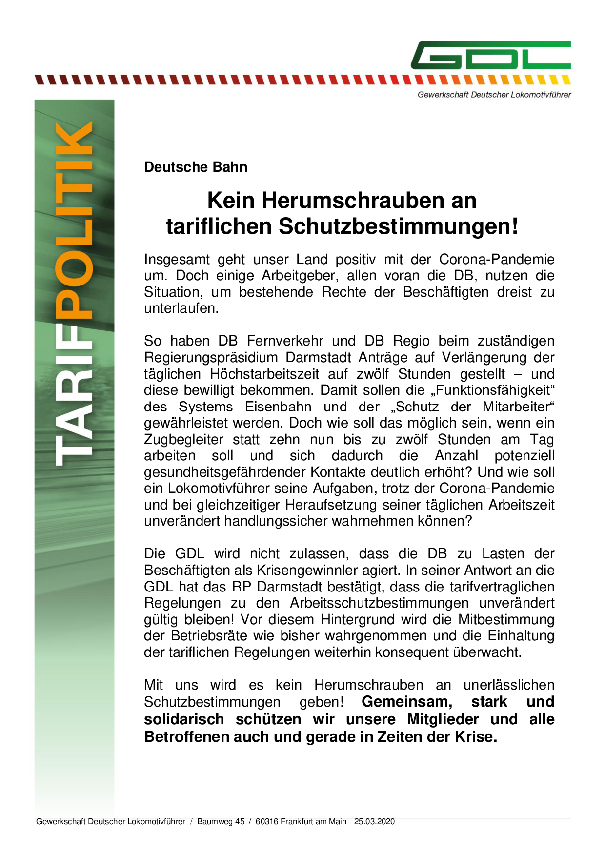Änderung des GDL Tarifwerks DB