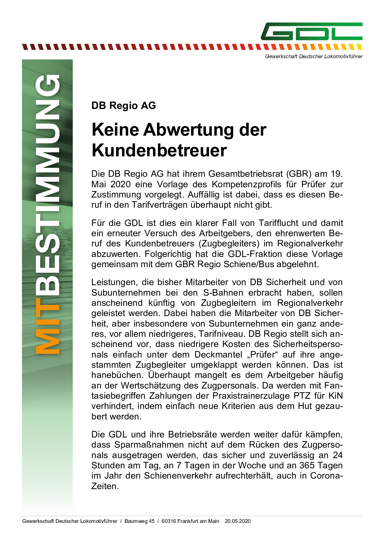 • ➔ Änderung des GDL Tarifwerks DB