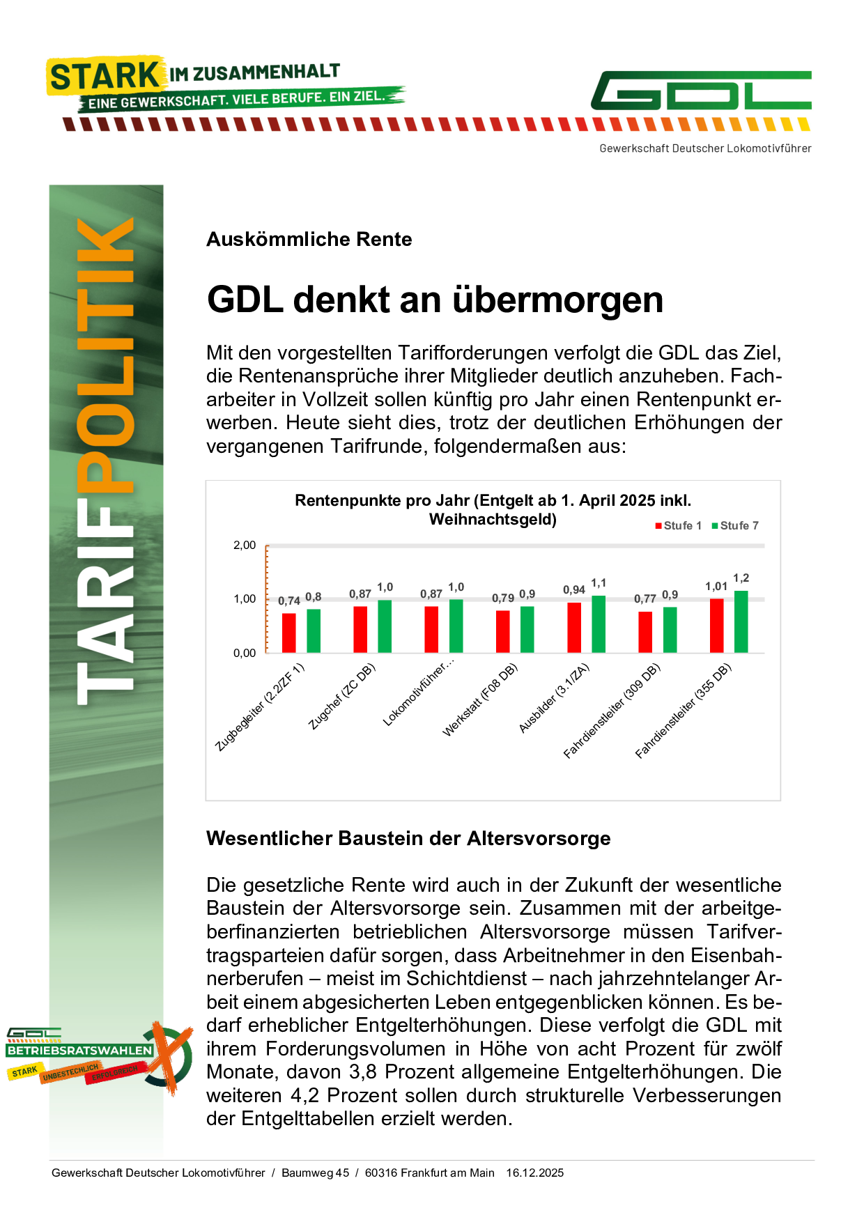 Änderung des GDL Tarifwerks DB