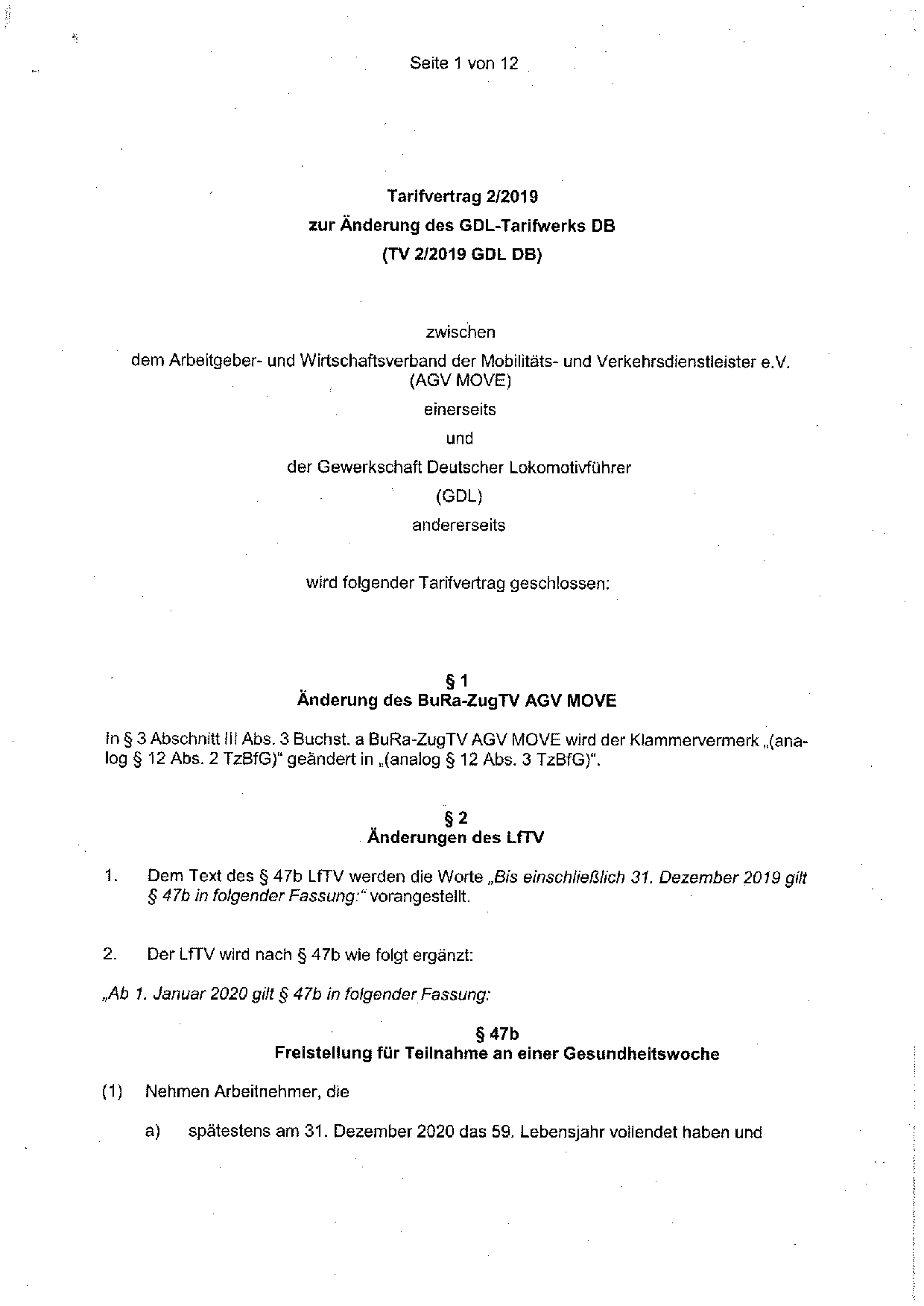 Tarifverträge ➔ Änderung des GDL Tarifwerks DB